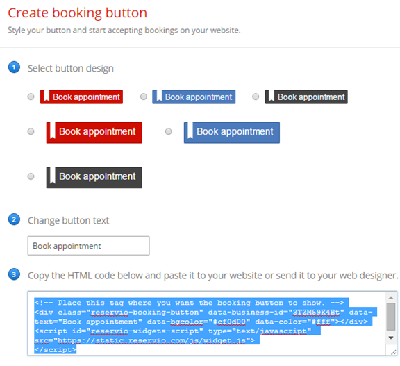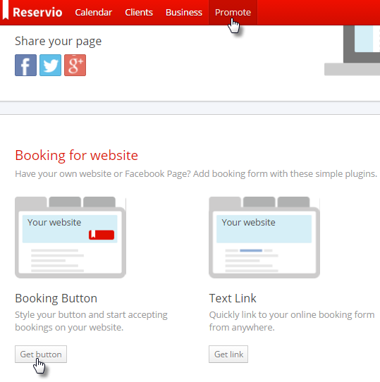 - Register on the Reservio homepage and create a calendar for reservations. In the Promote tab, click on Get Button.