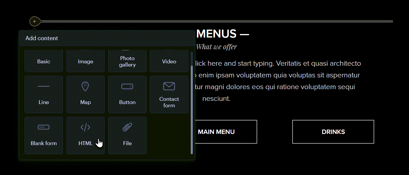 - Position your mouse in the section so that the plus button for adding new content appears.