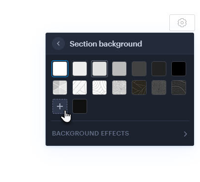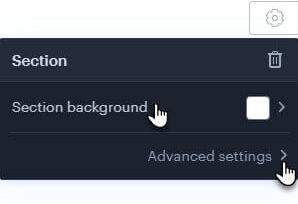 - Hover the mouse over the section. The section setting button (gear icon) appears in the upper right corner. Here you can select Section Background or Advanced Settings.