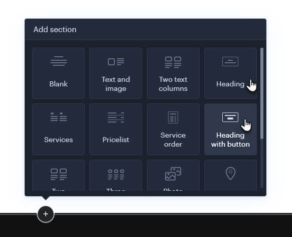 This feature activates a dark border around the title, subheading, and caption above the title. - In addition to the classic sections, you can also add heading sections, ie Heading and Heading with a button. These sections have more setting options, similar to the page header itself.