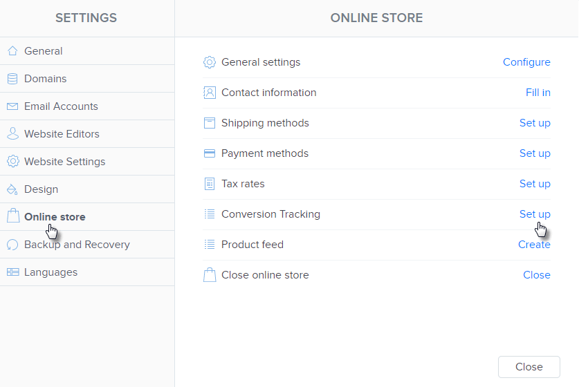 - In the Online Store tab, click Set up next to Conversion Tracking.