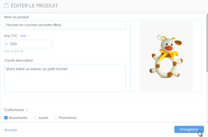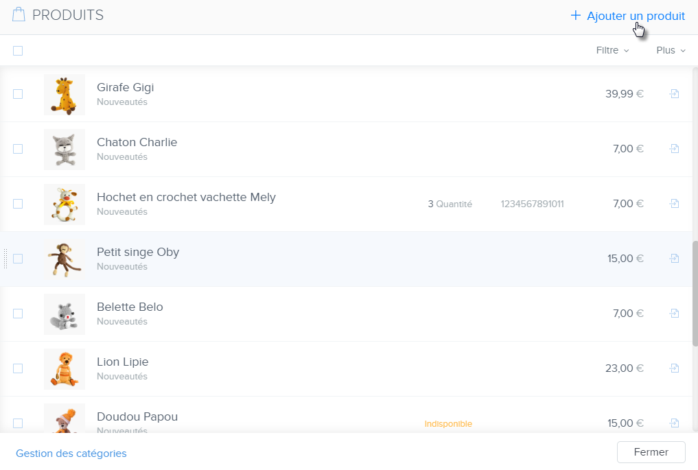 Votre nouvelle boutique une fois créée, vous y trouverez quelques produits par défaut que vous pouvez personnaliser selon vos besoins. Vous pouvez aussi créer de nouveaux produits. Dans cet article vous apprendrez à créer un nouveau produit, ajouter une description ou une photo à votre fiche produit et modifier le taux de TVA.