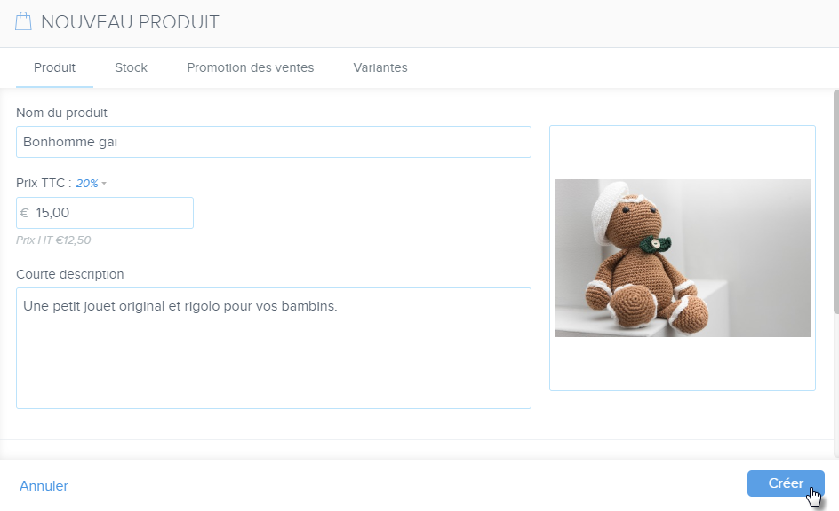 - N’oubliez pas de cliquer sur Créer pour sauvegarder le produit.
