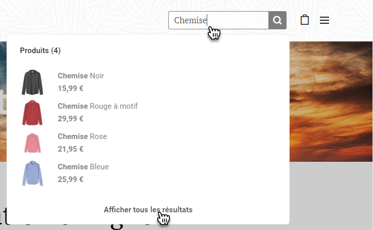 Le champ de recherche a également une recherche automatique et l’utilisateur peut sélectionner l’option Afficher tous les résultats.