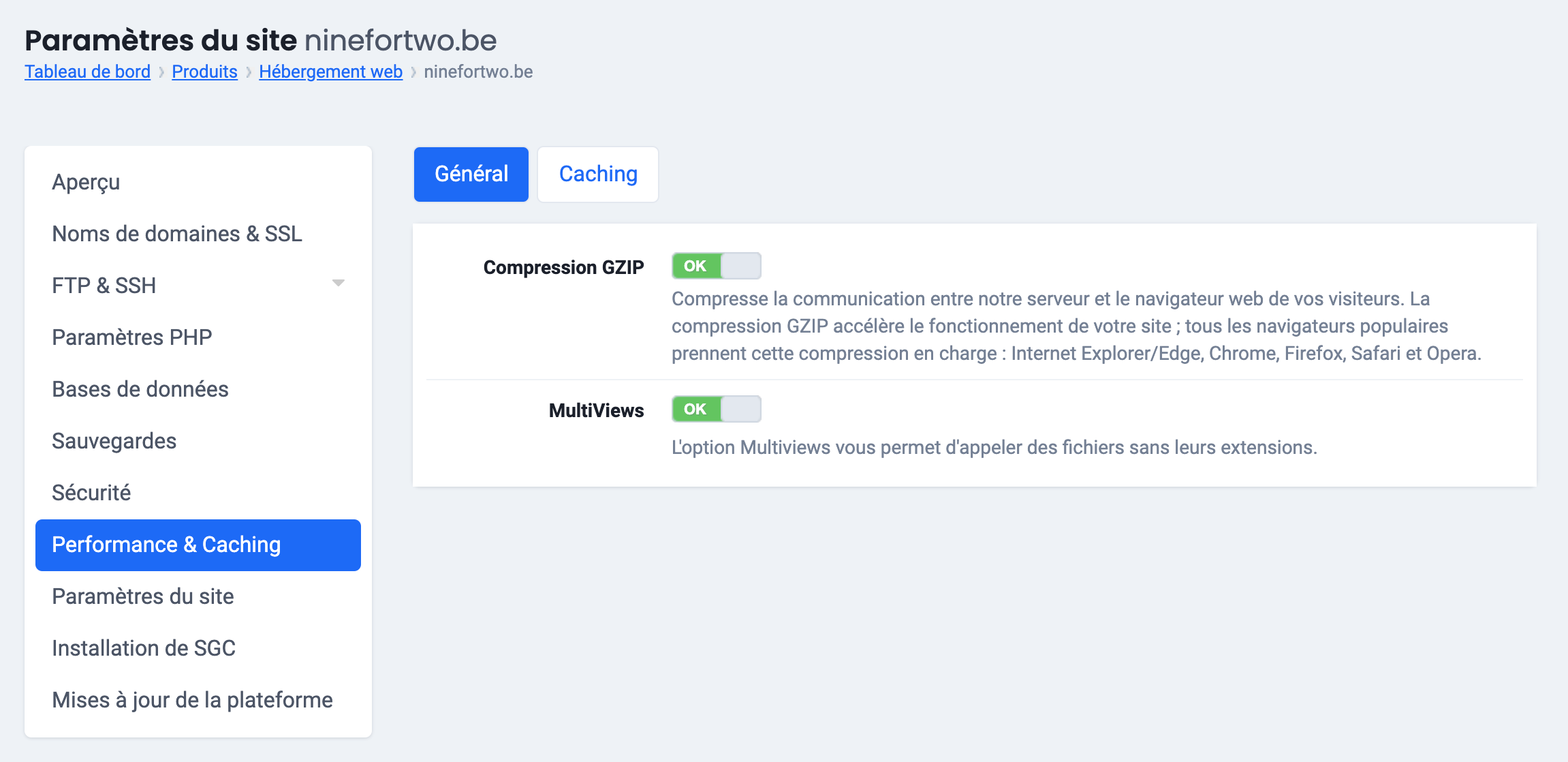 - Dans le menu de gauche, choisissez « Performance & Caching »