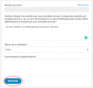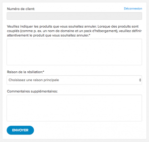 - Vous verrez alors le formulaire d’annulation. Votre numéro de client est automatiquement indiqué dans le champ.