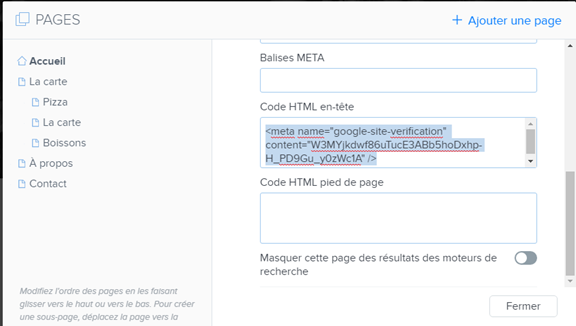 - Cliquez sur Balise HTML sous l’onglet Autres méthodes de validation. Copiez le code qui apparaîtra.