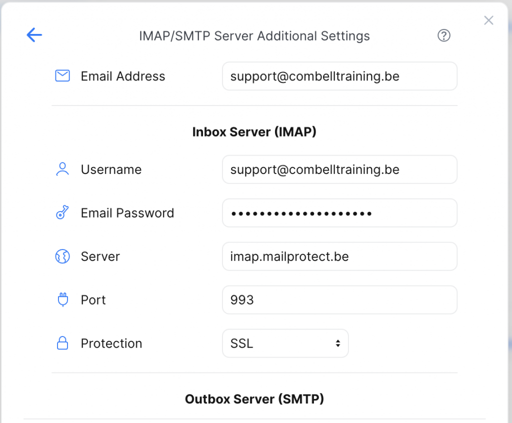 - Adresse e-mail : l’adresse e-mail que vous souhaitez configurer
