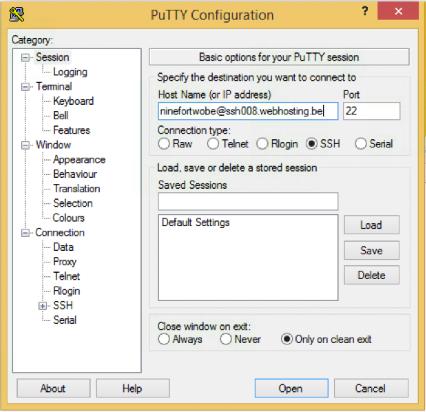2. Ouvrez Putty et cliquez sur « Session » dans le menu de gauche.