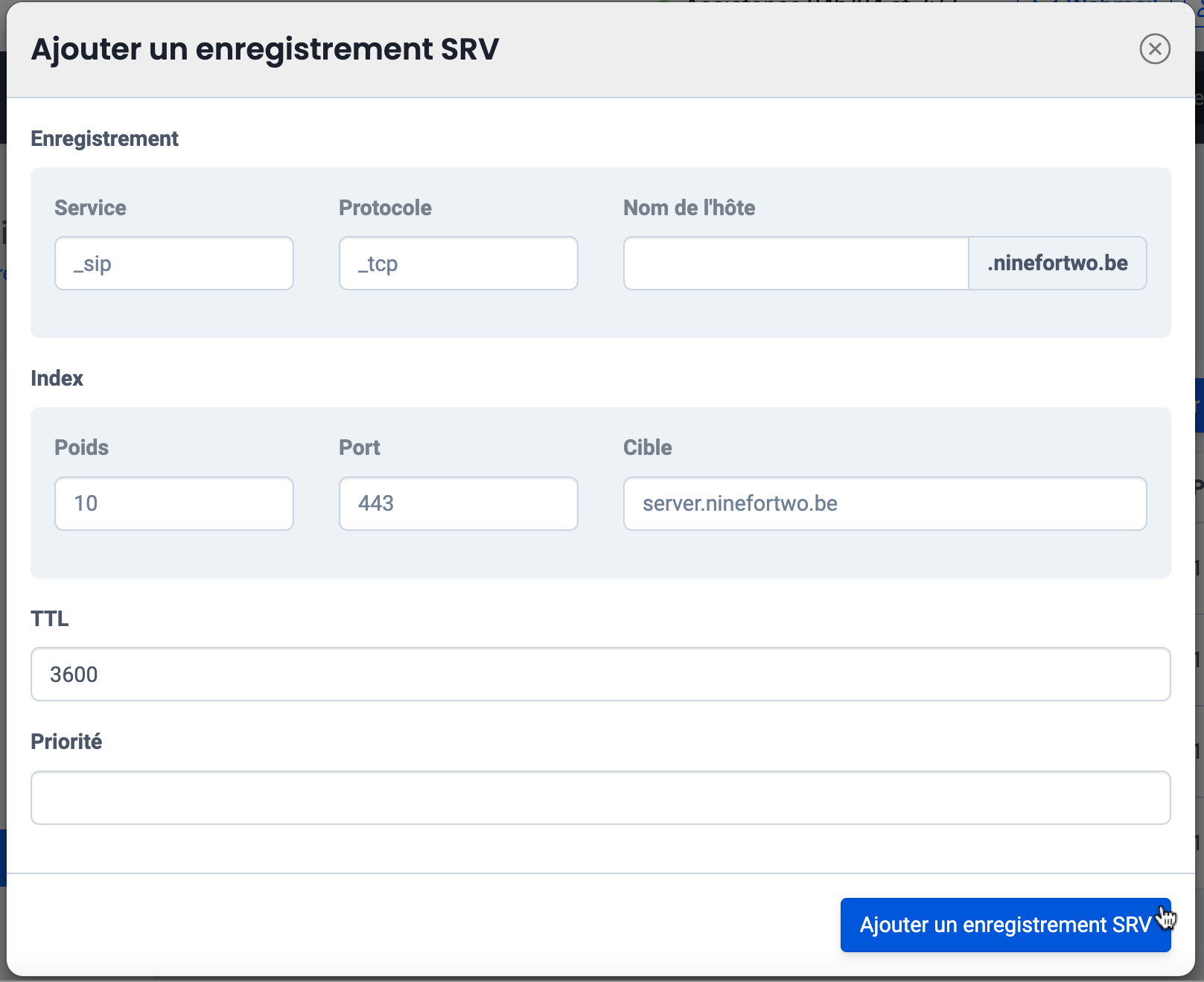 L’enregistrement SRV est une sorte d’enregistrement DNS qui détermine l’emplacement de serveurs pour des services spécifiques. Il est nécessaire lorsque vous utilisez des services tels que SIP, XMPP, CalDAV, LDAP et d’autres encore.