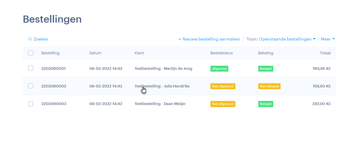 - Om bestellingen te kunnen bewerken, kies je in het projectoverzicht Overzicht en Bestellingen.