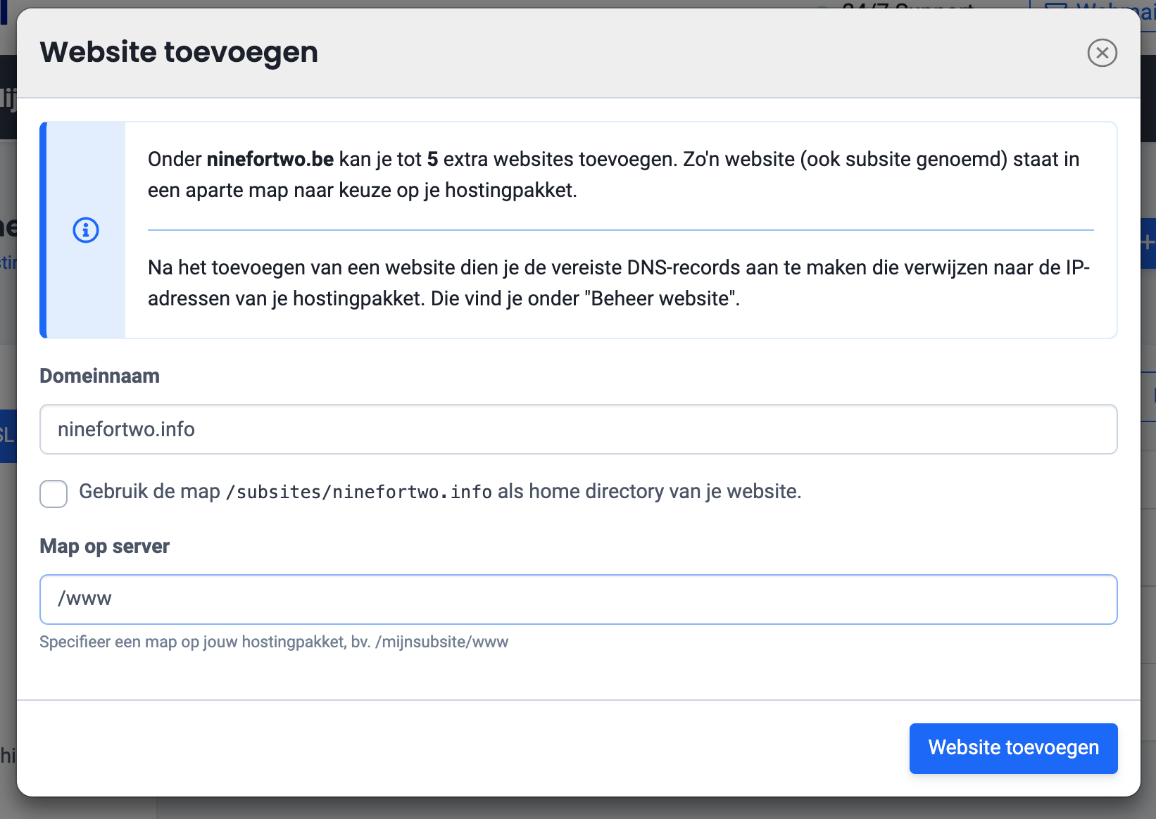 1. Maak een extra website aan op het hostingpakket waar je website op staat.