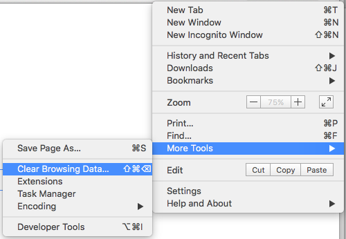 - Klik op de button “Instellingen” rechts bovenaan, en kies “Meer tools” > “browsegegevens wissen”.