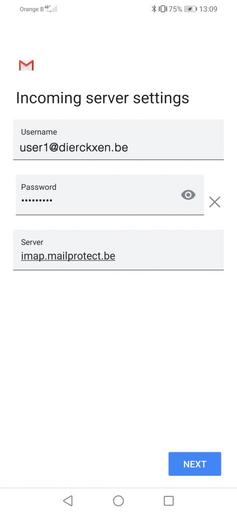 - De inkomende server is imap.mailprotect.be