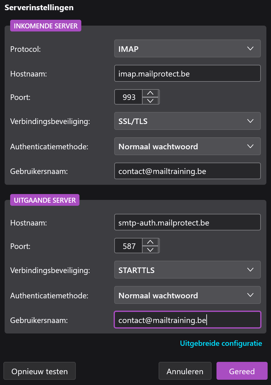 - Inkomende server: imap.mailprotect.be – Poort 993