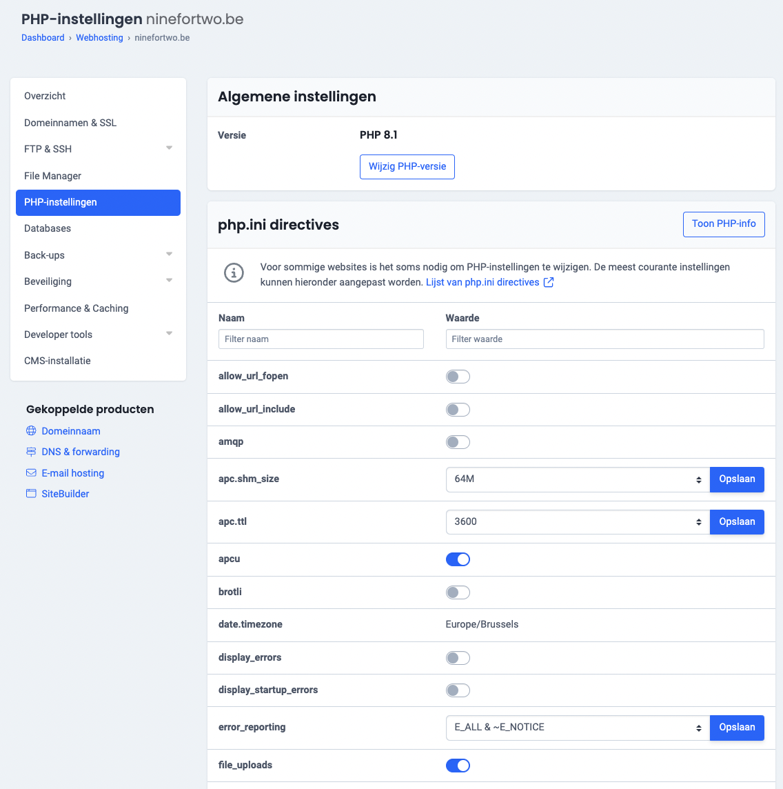 - Ga naar “Mijn producten” > “Webhosting” > Jouw domeinnaam.