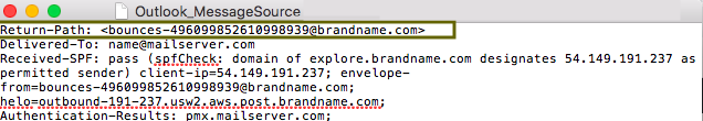 - Het bovenste deel van de bron is de mail header (zie afbeelding).