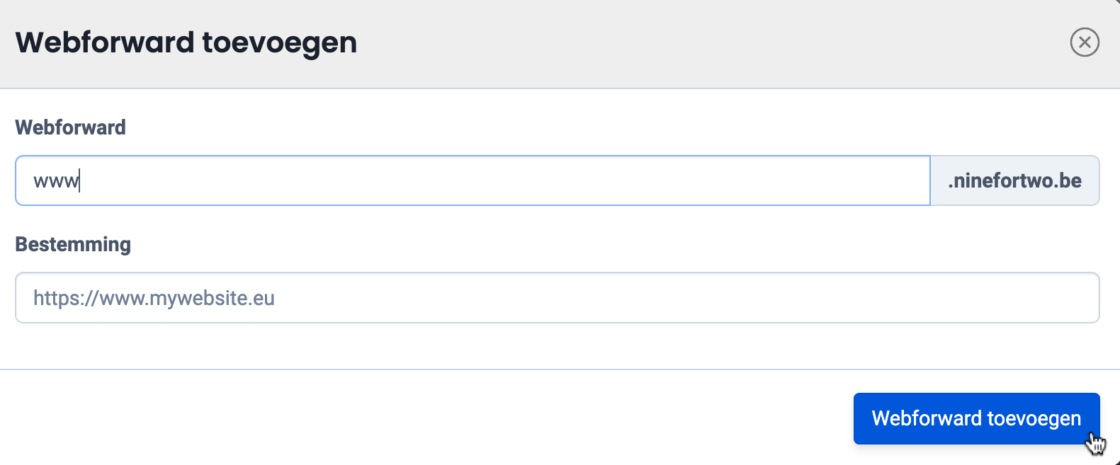 - Klik op de knop “toevoegen” om de webforward aan te maken.